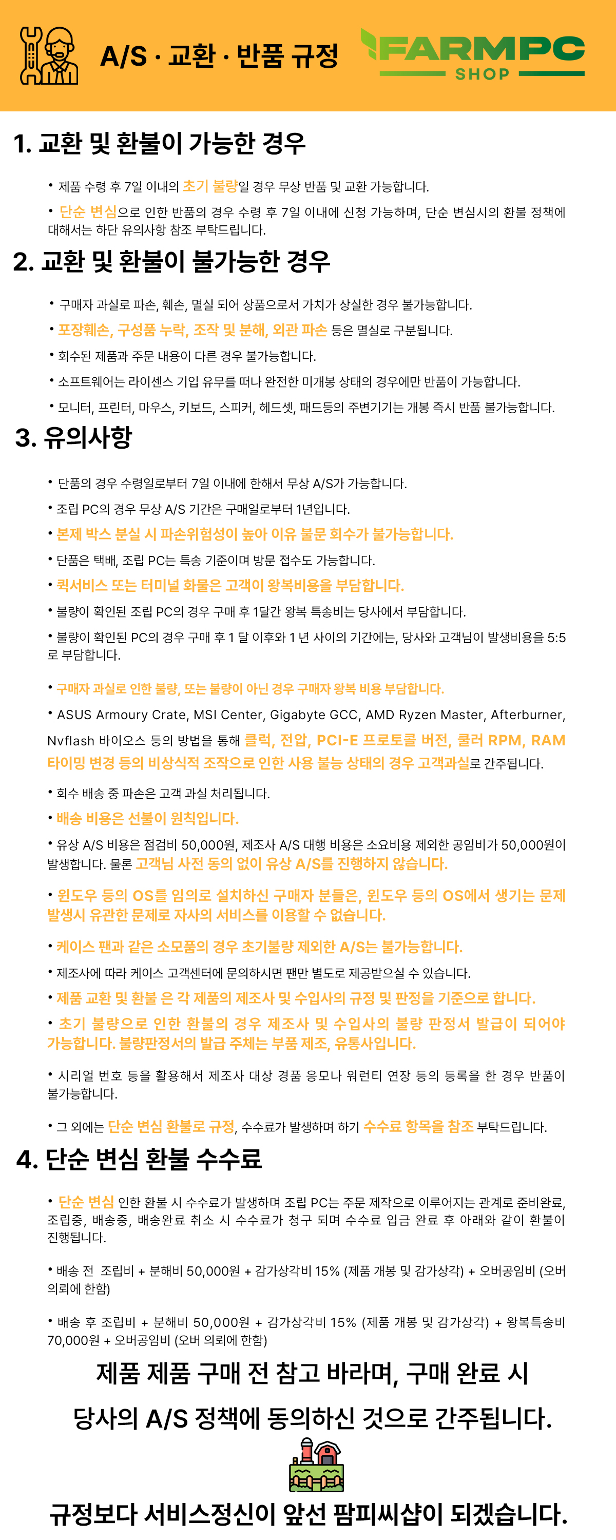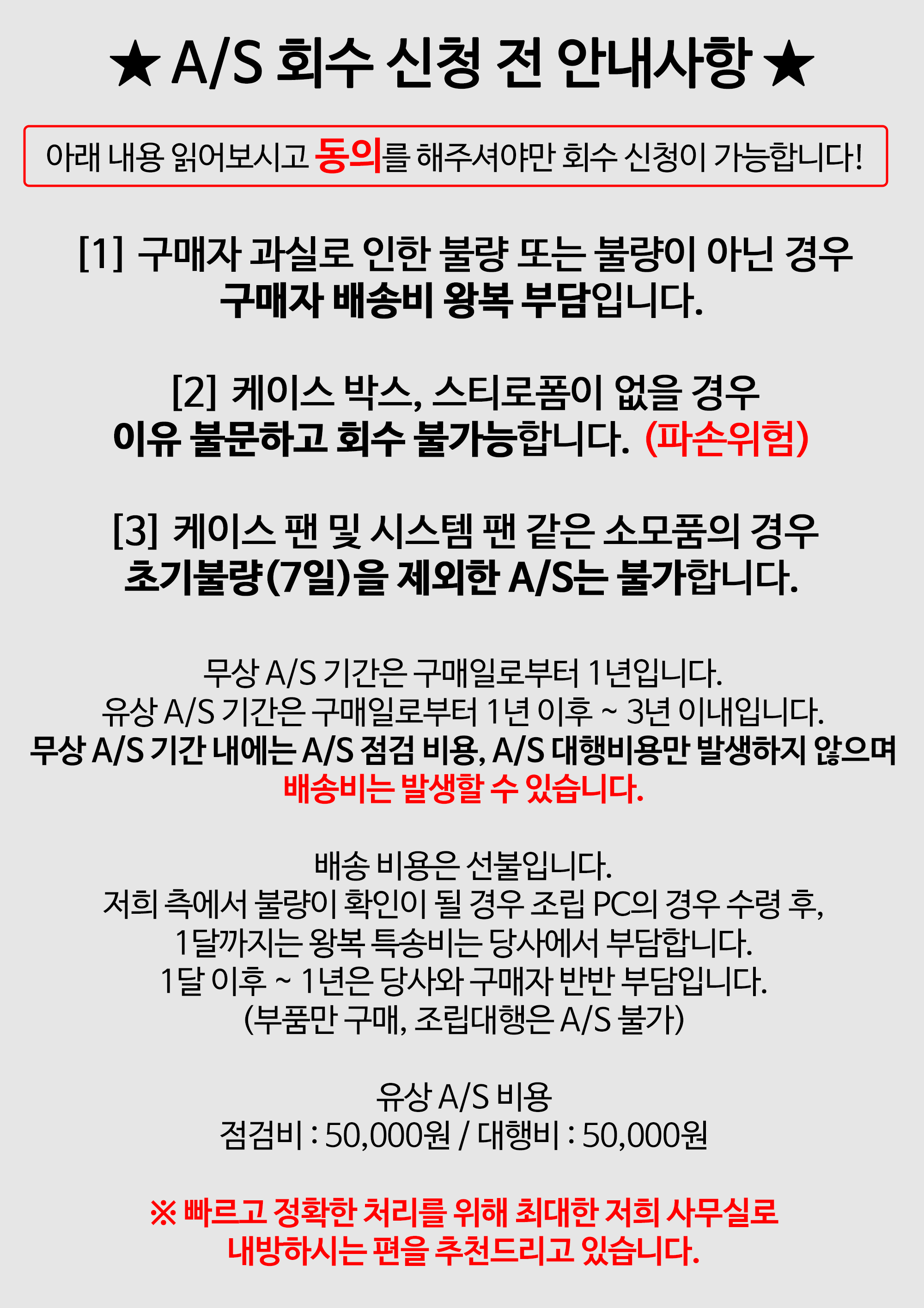 [공지사항] A/S 정책 - 꼭 숙지 하시고 구매에 착오 없으시길 바랍니다. |