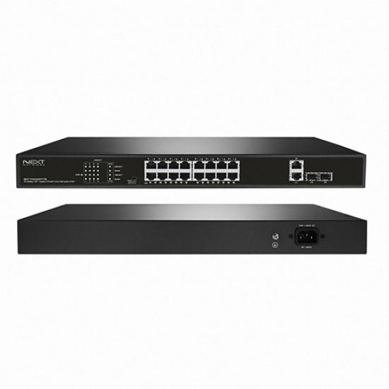 스위치허브 / 20포트 / 100Mbps / 스위칭용량:7.2Gbps / 인터페이스:RJ-45 / SFP:2포트 / PoE:16포트 / 최대 270W / Uplink / PoE / 가로:440mm / 세로:207mm / 높이:45mm