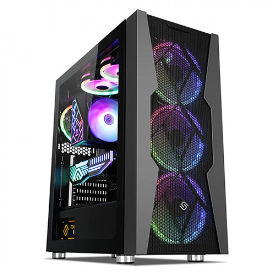 ATX 케이스 / 지원보드규격:E-ATX,ATX,M-ATX,M-ITX / VGA 길이:400mm / CPU쿨러 높이:165mm / 미들타워 / [패널] / 측면 패널 타입:강화유리 / [쿨러/튜닝] / 쿨링팬:총4개 / LED팬:4개 / 후면:120mm LED x1 / 전면:140mm LED x3 / [크기] / 너비(W):215mm / 깊이(D):470mm / 높이(H):490mm / [호환성] / 지원파워규격:표준-ATX / 파워 장착 길이:220mm / 파워 위치:하단후면 / [부가기능] / RGB 컨트롤 / LED 색상:RGB
