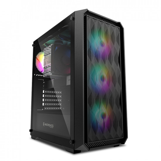 ATX 케이스 / 지원보드규격:ATX,M-ATX,ITX,M-ITX / VGA 길이:345mm / CPU쿨러 높이:160mm / 미들타워 / [패널] / 전면 패널 타입:메쉬 / 측면 패널 타입:강화유리 / [쿨러/튜닝] / 쿨링팬:총4개 / LED팬:4개 / 후면:120mm LED x1 / 전면:120mm LED x3 / [크기] / 너비(W):200mm / 깊이(D):390mm / 높이(H):449mm / [호환성] / 지원파워규격:표준-ATX / 파워 장착 길이:170mm / 파워 위치:하단후면 / [부가기능] / LED 색상:RGB / [변경사항]