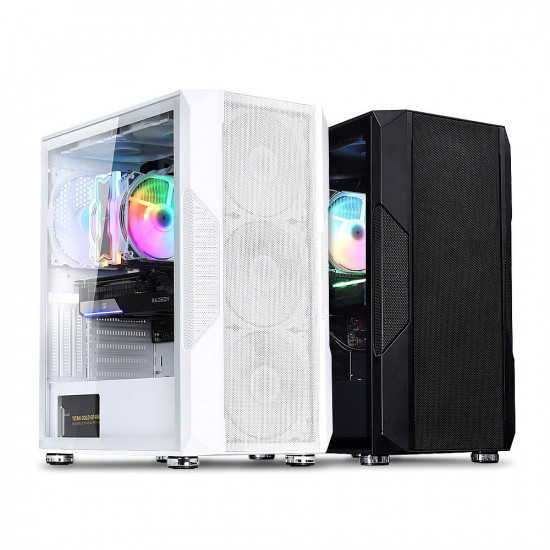 ATX 케이스 / 지원보드규격:ATX,M-ATX,ITX / VGA 길이:350mm / CPU쿨러 높이:175mm / 미들타워 / [패널] / 전면 패널 타입:메쉬 / 측면 패널 타입:강화유리 / [쿨러/튜닝] / 쿨링팬:총6개 / 후면:140mm x1 / 전면:140mm x3 / 상단:140mm x2 / [크기] / 너비(W):225mm / 깊이(D):400mm / 높이(H):458mm / [호환성] / 지원파워규격:표준-ATX / 파워 위치:하단후면 / [부가기능] / 외부LED 컨트롤