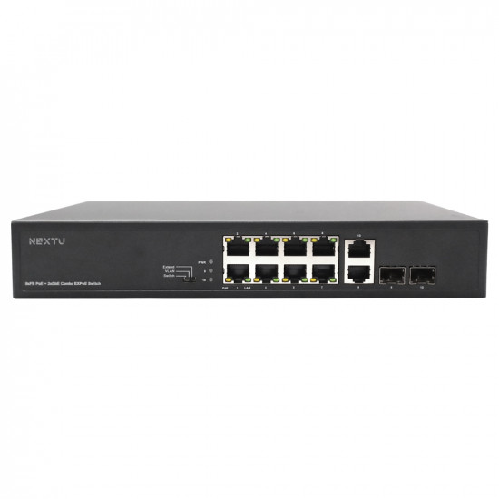 스위치허브 / 10포트 / 1Gbps / 스위칭용량:5.6Gbps / Unmanaged / SFP:2포트 / PoE:8포트 / 최대 120W / Uplink / PoE / Full-Duplex / 가로:200mm / 세로:118mm / 높이:44mm
