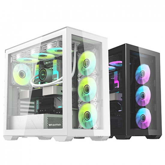 ATX 케이스 / 지원보드규격:E-ATX,ATX,M-ATX,M-ITX / VGA 길이:425mm / CPU쿨러 높이:185mm / 미들타워 / [패널] / 전면 패널 타입:강화유리 / 측면 패널 타입:강화유리 / [쿨러/튜닝] / 쿨링팬:총1개 / 후면:120mm x1 / [크기] / 너비(W):248mm / 깊이(D):473mm / 높이(H):456mm / [호환성] / 지원파워규격:표준-ATX / 파워 장착 길이:280mm / 파워 위치:하단후면
